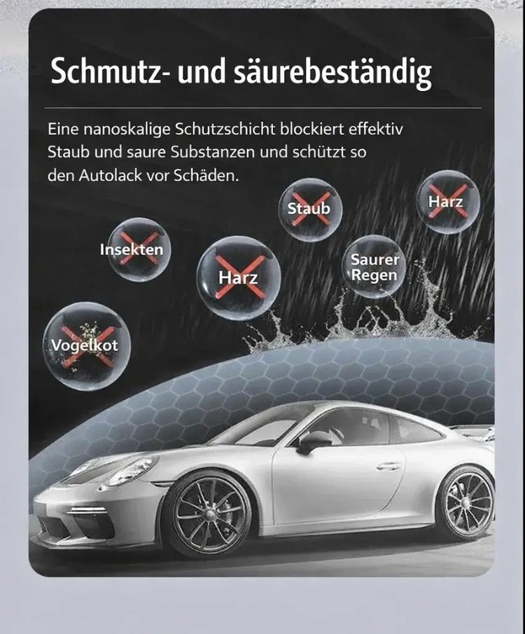 Graphen-Schutz aus dem Labor! 🛡️ Luftfahrt-Qualität: 100% Schutz gegen Salz, Schmutz & UV. Dein Auto glänzt wie neu! ✨ Nano-Effekt: Regen erledigt die Wäsche. 🌧️