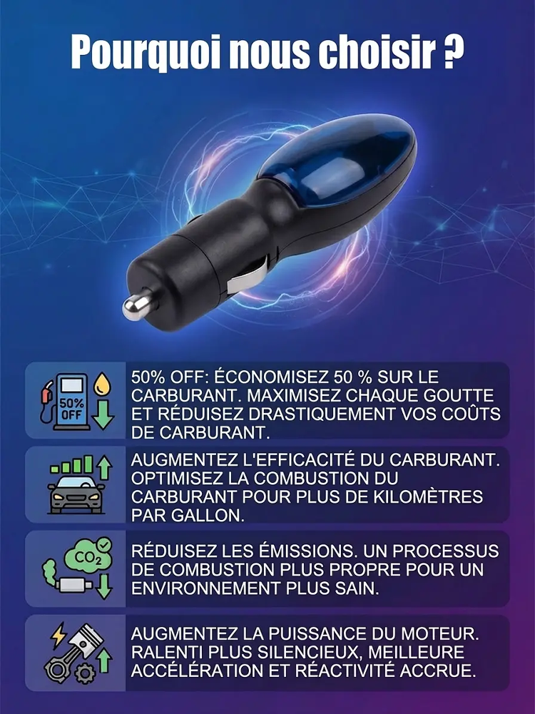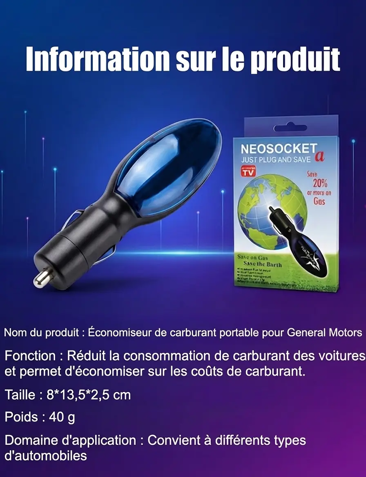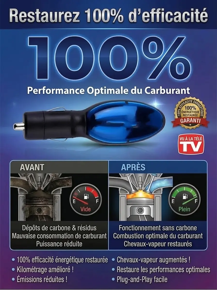 Découvrez l'innovation d'un ex-ingénieur Ford : branchez ce boîtier sur votre allume-cigare pour brûler 100% du carburant ! Votre plein dure des semaines, l'aiguille ne descend plus. Déjà épuisé en magasin, seulement 50 unités en ligne. Ne brûlez plus votre argent, commandez maintenant !